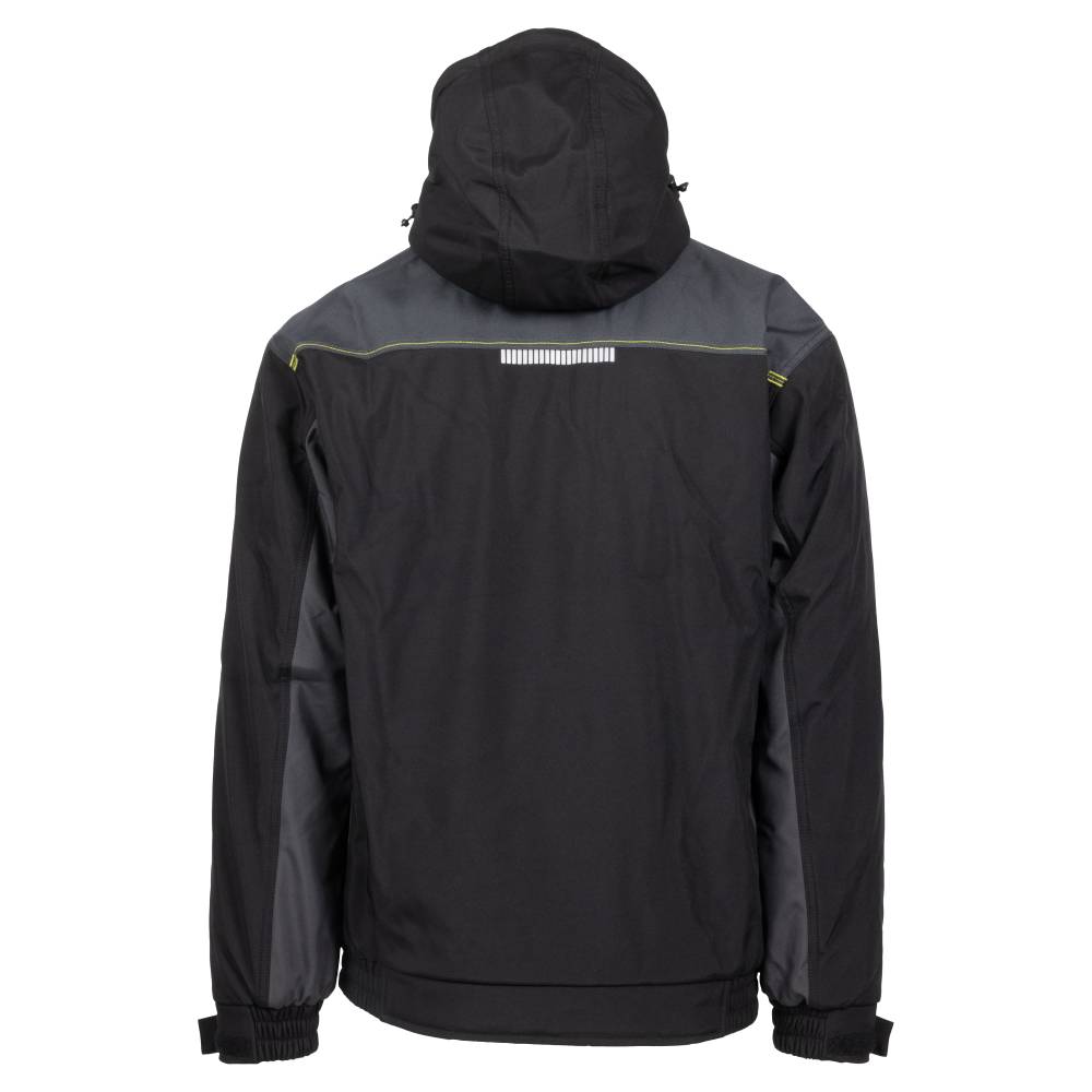 CONSTRUCTIE: jacheta de iarna cu elemente reflectorizante la umar si platca sin spate, inchidere cu fermoar, gluga ajustabila si sistem de ajustare, la interior, in talie cu elastic, un buzunar la piept inchidere cu fermoar, doua buzunare in talie cu fermoar, la interior un buzunar interior inchidere cu fermoar si un si al doilea buzunar interior inchidere cu velcro, sistem de ajustare la maneci cu velcro si elastic.