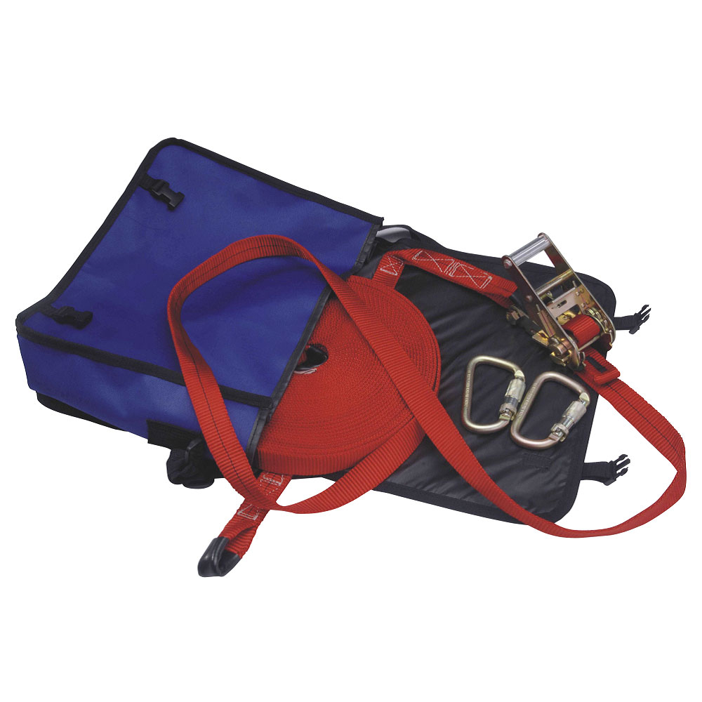 CONSTRUCTIE: linie de siguranta din poliamida, lungime 20 m., prinsa la capete in puncte de ancorare, tensionarea se face prin intermediul unui clichet, dupa fixarea in cele 2 puncte;