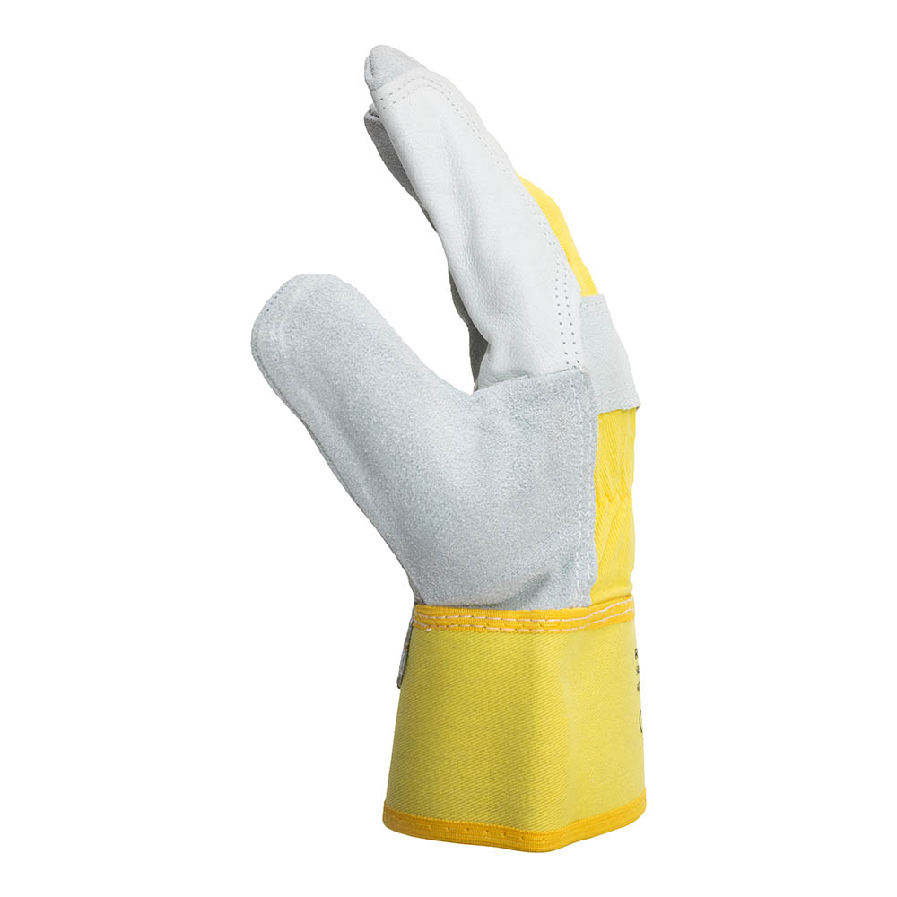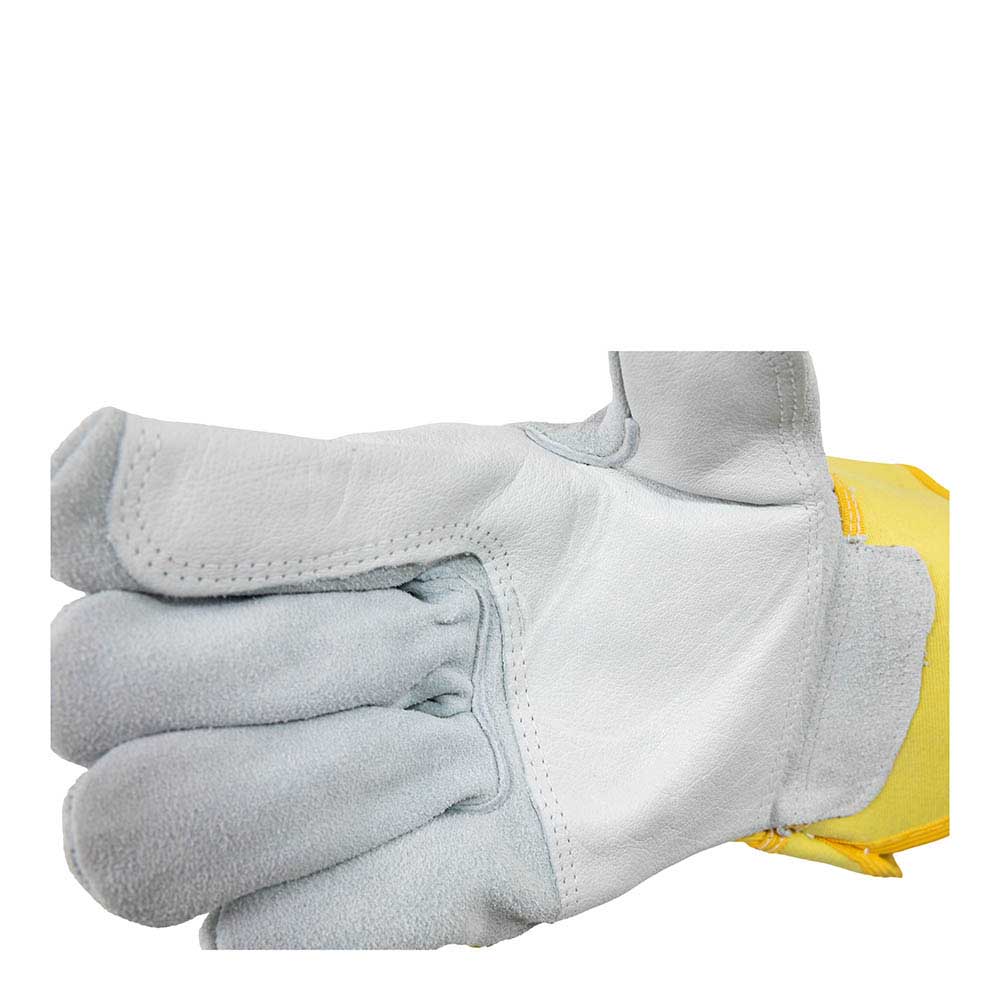 CONSTRUCTIE: manusa cu cinci degete, cu manseta rigida, confectionata din piei presate si spalt bovina, in combinatie cu textil, dublura in palma, degetul mare si aratator dintr-o bucata;