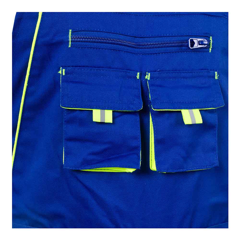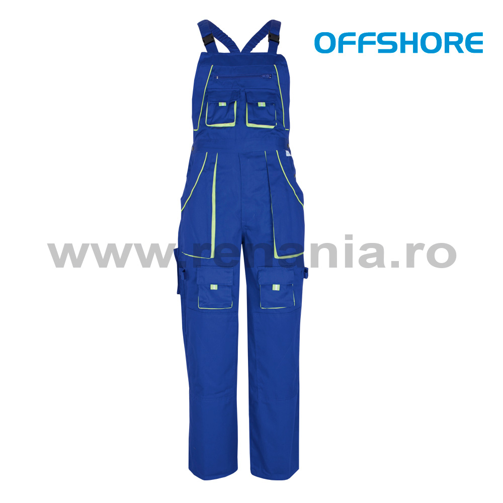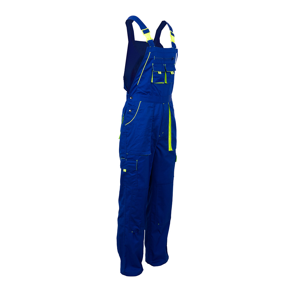 CONSTRUCTIE: pantalon cu pieptar, cu 2 bretele reglabile cu ajutorul cataramelor, 2 buzunare pe pieptar inchise cu velcro, 2 buzunare laterale in fata cu pliu pentru larghete, buzunare pe ambele picioare in lateral, bucle pentru scule, buzunar in spate, inchidere slit cu fermoar.