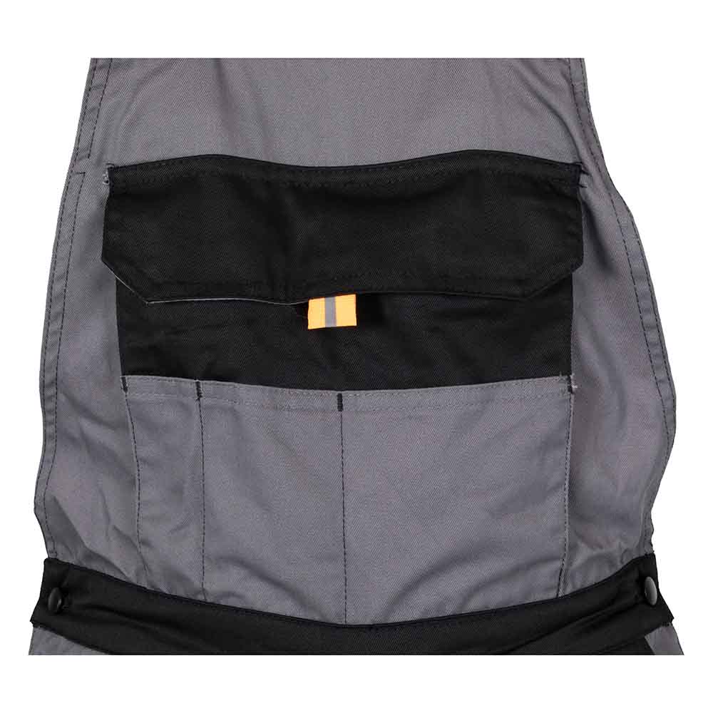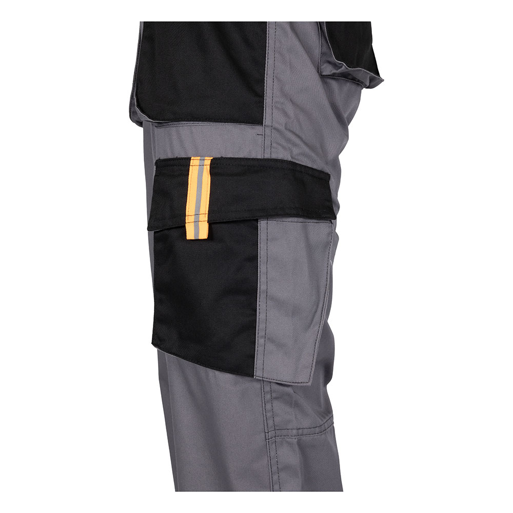 CONSTRUCTIE: pantalon cu pieptar, bretele cu elastic si catarame pentru ajustare, reglare in lateral cu nasturi si elastic in spate, buzunare cu pliuri de larghete, 2 buzunare laterale in fata, buzunar pe picior in lateral, 2 buzunare in spate inchise cu clapete si velcro, inchidere slit cu fermoar, elemente reflectorizante.